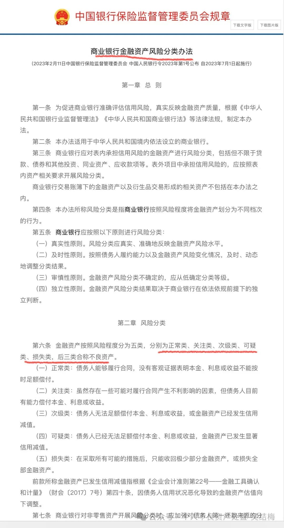 下图所示是原银保监会所发布的《商业银行金融资产风险分类办法》