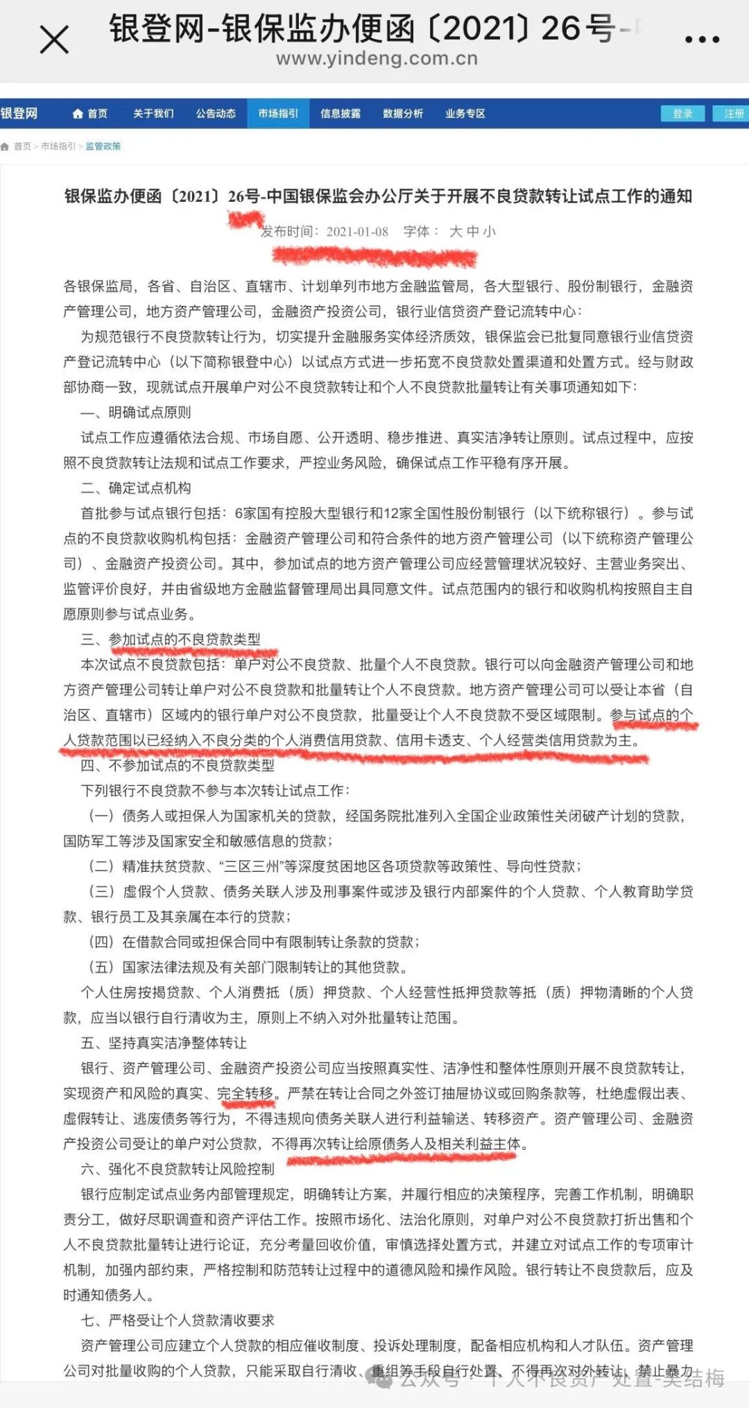 也就是说,过去银行逾期的坏账,除了用催收,起诉,核销等方式追偿,现在多了一种新方式,银行的坏账可以通过批量债权转让卖给AMC!