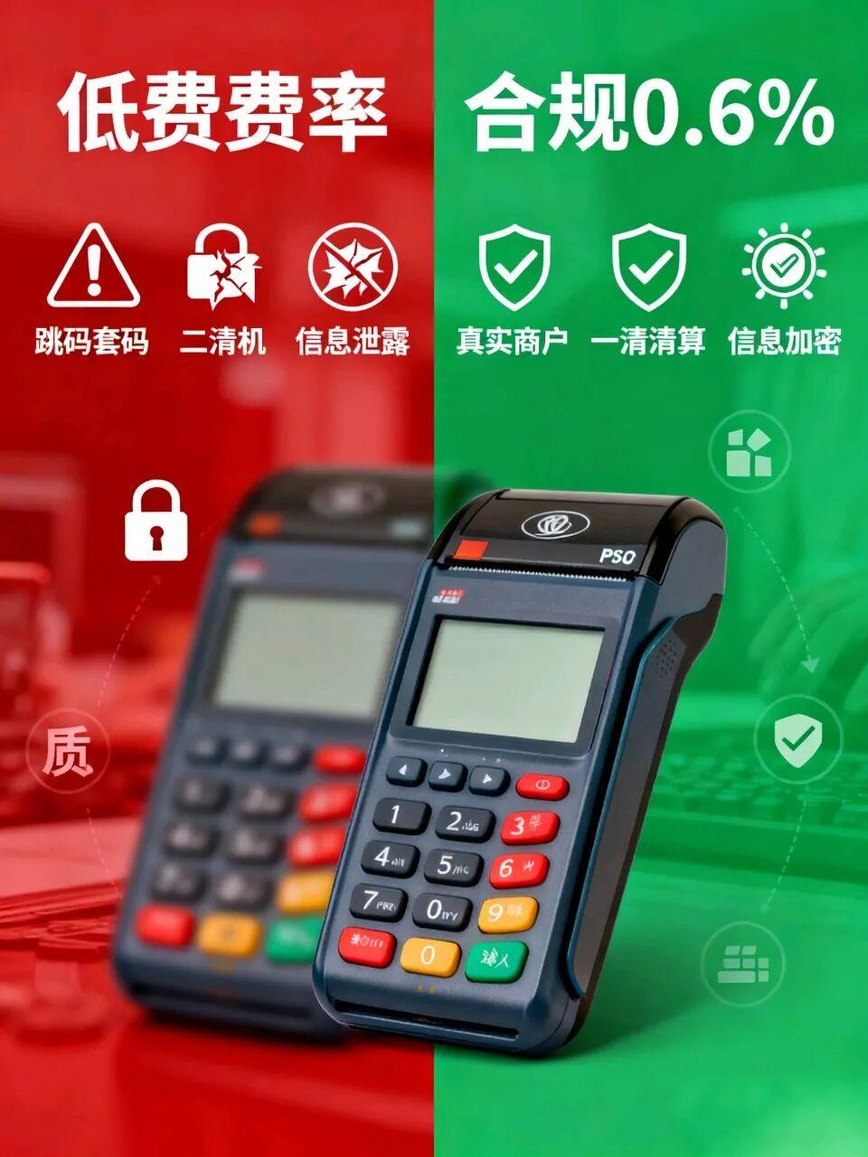2. 二清机陷阱,资金可能跑路:正规POS机是“一清机”(资金直接由银联清算到账户),而低费率机具很多是“二清机”(资金先到服务商账户,再转给你)。如果服务商卷款跑路,你的交易资金就会打水漂;