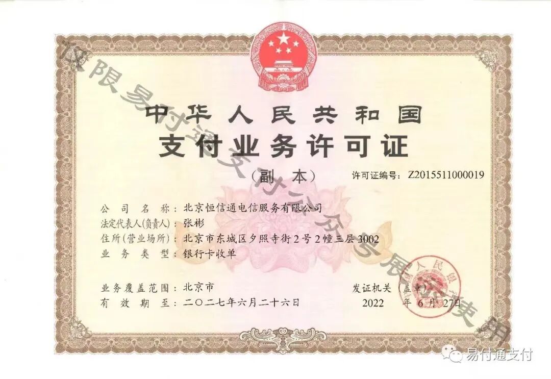恒信通支付牌照:全积分机构码:873北京恒信通