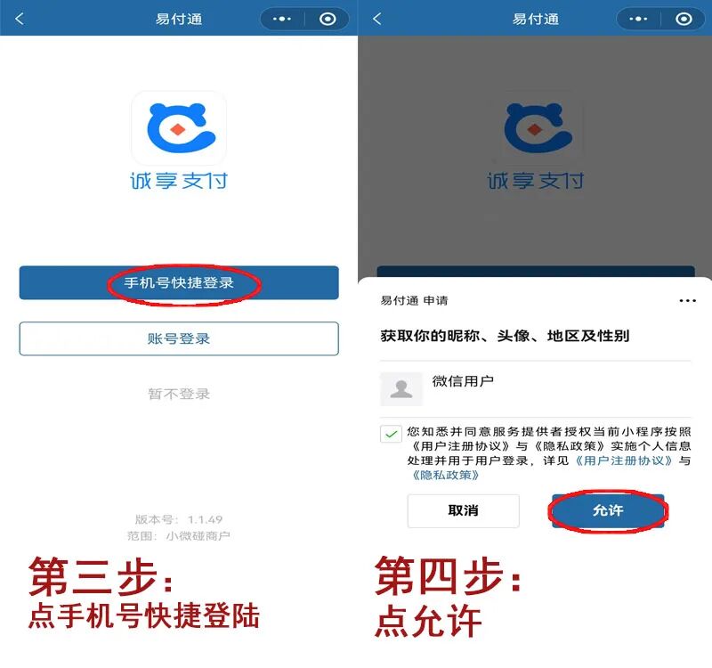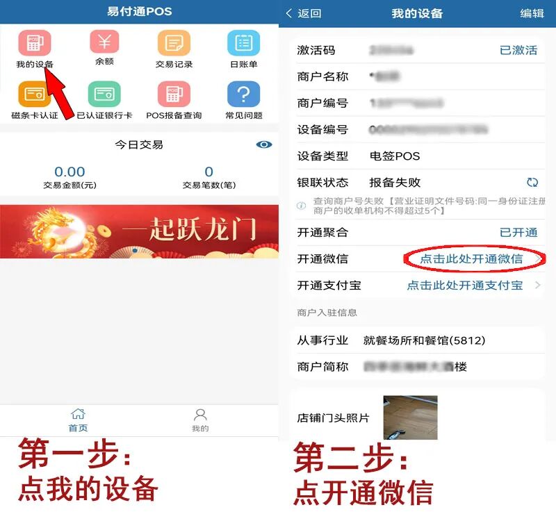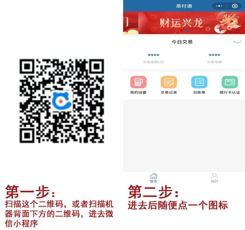 开通路径: 点击易付通小程序-我的-提额认证-添加信用卡,用这张已绑定的信用卡进行1000元以上的刷卡交易或者插卡交易,次日自动开通扫码功能。