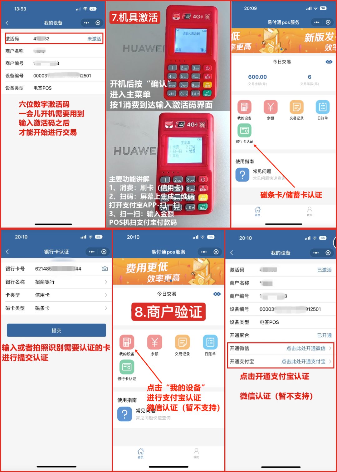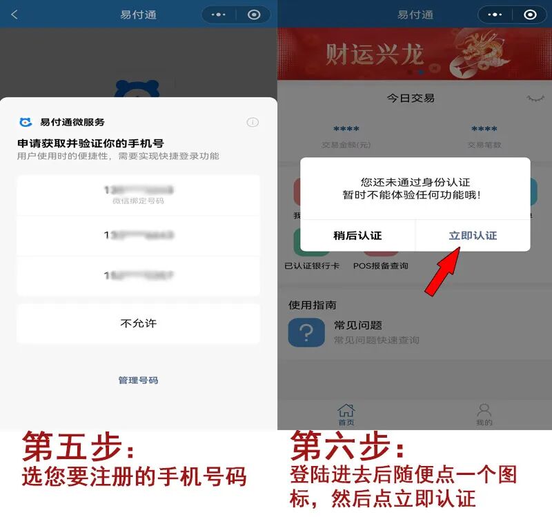 以上一到三步骤完成之后即可正常刷卡交易和插卡交易,如需要其他更多功能可以按照下面的步骤进行认证。