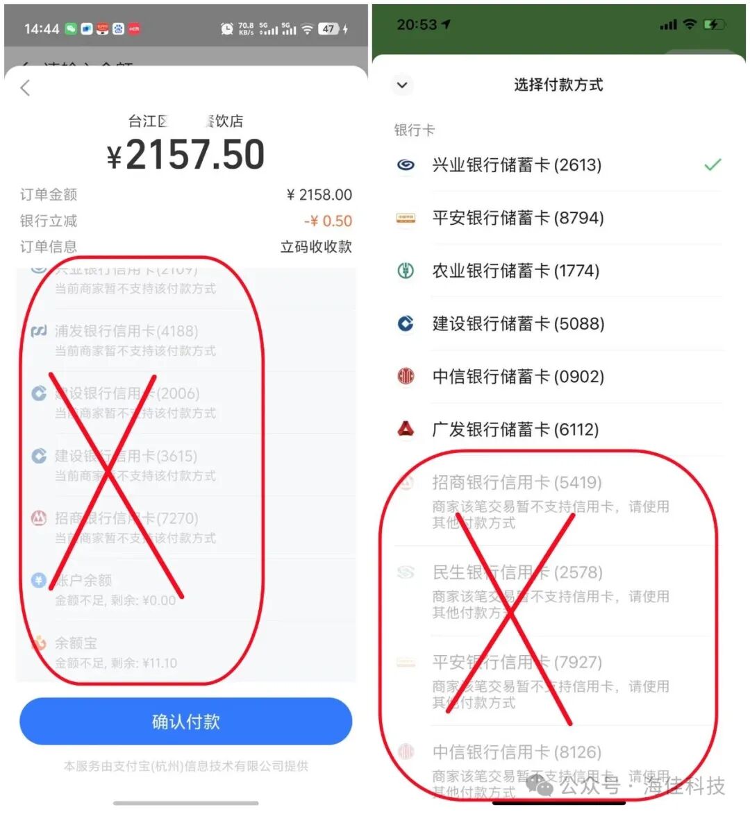不支持信用卡付款